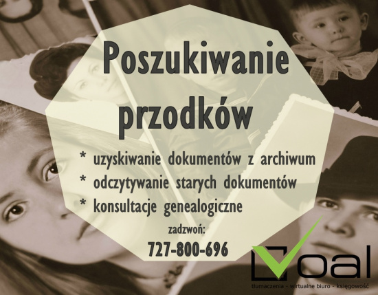 Szanse na ustalanie przodków wydają się bezpowrotnie mijać wraz ze śmiercią dziadków i pradziadków. Przynajmniej tak myśli wielu z nas. Tymczasem mając podstawowe dane o starszych pokoleniach w swojej rodzinie można dowiedzieć się naprawdę wiele. Poszukiwanie przodków jest czasochłonnym zajęciem, dlatego pomożemy Państwu w dotarciu do swoich korzeni, zagłębianiu się w historie rodzinne i uzyskiwaniu dokumentów z archiwów.
